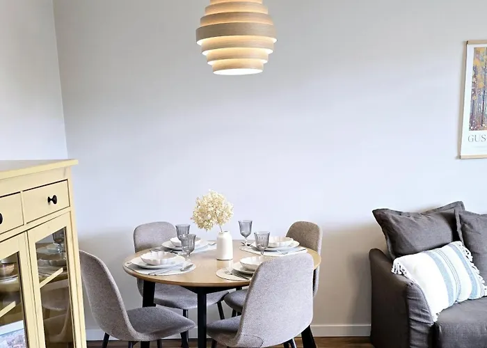 Ten apartament jest wyposażony w pełnowymiarową kuchnię, gdzie goście mogą przyrządzać własne posiłki. W odległości 5-minutowego spaceru od obiektu mieści się OM Restauracja, w którym można spróbować dań kuchni azjatyckiej. Stacja metra Wilanowska, z której można dojechać do pozostałych części Warszawy, znajduje się w odległości 900 metrów.